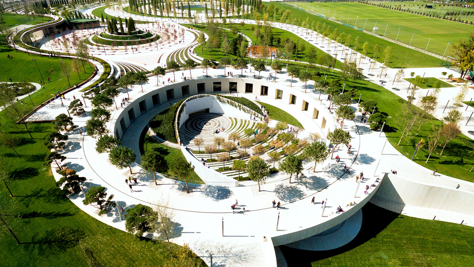 Много парков, деревьев, озер, ручьев. Есть где просто погулять, практически круглый год.